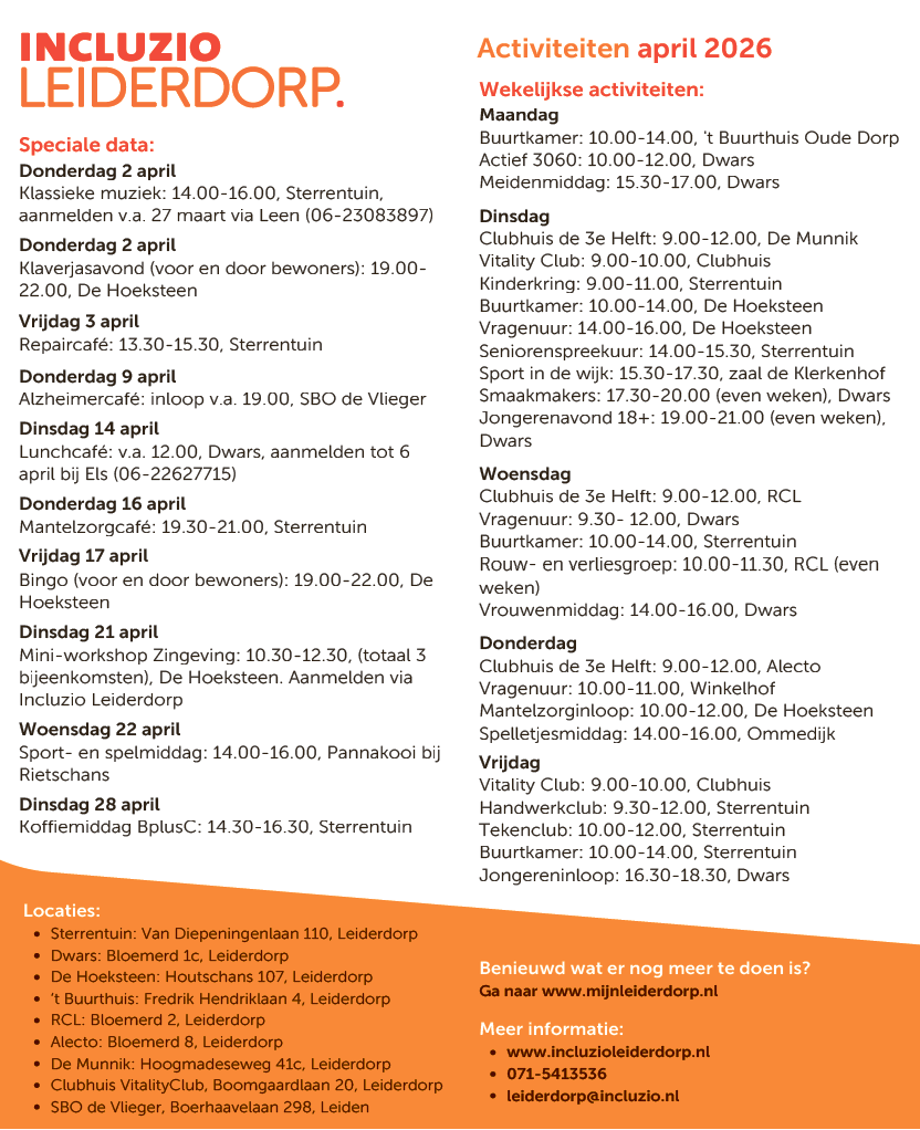 Wilt u meedoen met de activiteiten van Incluzio? Kijk dan hier op het overzicht.
