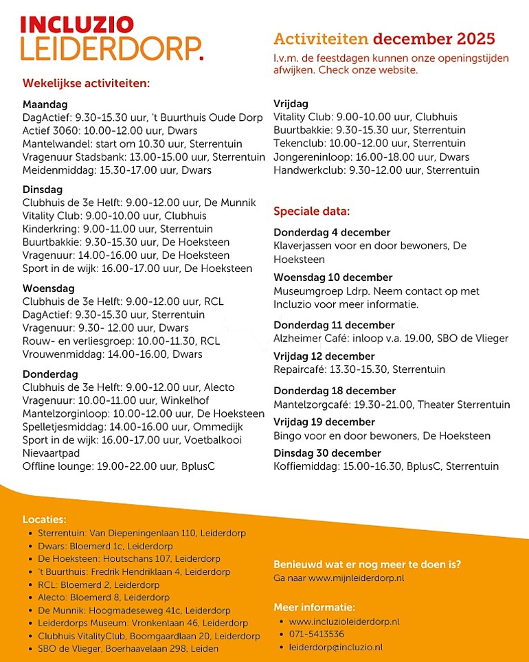 Kijk wat er bij Incluzio te doen is in de maand december.