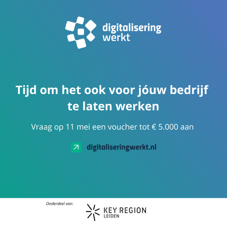 Ondernemers in de Key Region Leiden kunnen vanaf 11 mei een voucher aanvragen om externe expertise in te schakelen voor hun digitaliseringsplannen. Denk aan advies, begeleiding of implementatie op het gebied van digitale strategie, marketing, automatisering, veiligheid of AI.